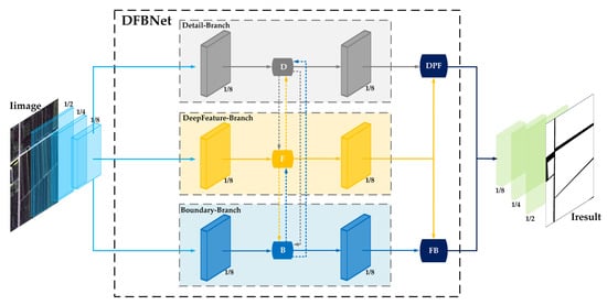 The input of DFBNet is a multi-band remote-sensing image block Iimage, and the segmentation result Iresult is obtained after the processing of DFBNet.