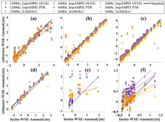 Correlation between Insitu-WSE-Anomaly and Altimeter-WSE-Anomaly. (a) Zhicheng. (b) Shashi. (c) Hankou. (d) Zhutuo. (e) Jingziguan. (f) Huantan.