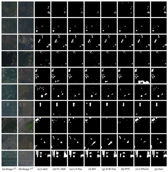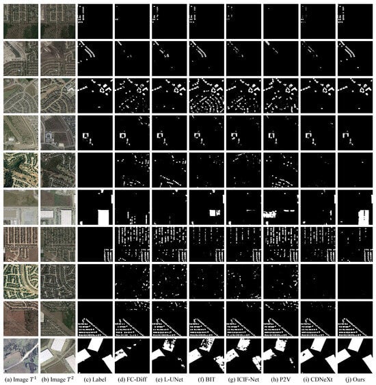 Change detection (CD) techniques extract altered regions from bi-temporal remote sensing images, providing a crucial means to monitor Earth’s surface changes over time [1]. CD plays a vital role in environmental monitoring [2], disaster assessment, and urban planning, enabling the tracking of deforestation, glacier retreat, damage assessment, and urban development. This information facilitates informed decision-making and effective resource management [3,4]. Consequently, CD has become an indispensable tool with significant societal and environmental benefits, and the development of accurate and efficient CD methods remains an active research area [5].