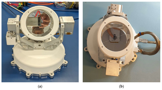 Once on the Moon, MPAc will be able to perform two continuous perpendicular rotations to accurately point the front face of MoonLIGHT towards the Earth; the device will operate in ultra-high-vacuum space conditions and in a wide temperature range [13,14]. The final integration of the MoonLIGHT+MPAc payload took place in 2023, and the Proto Flight Model 1 (PFM1) hardware space qualification tests were successfully passed in late 2023. The MoonLIGHT+MPAc payload was finally delivered to the ESA, NASA, and IM; it has been in storage since 6th December 2023, following acceptance, and is waiting for final integration on board IM’s CP-11 lander.
