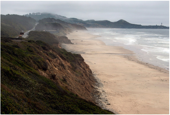 Similarly, Ruggiero et al. [27] conducted an assessment of short-term changes along the Pacific Northwest Coast of Oregon and Washington as part of the USGS national assessment of coastal change. Recognizing the limited historical data available for much of the Oregon coast, their analysis focused on beaches backed by dunes rather than sea cliff erosion. As a result, some areas were not evaluated due to insufficient data to assess any potential changes.