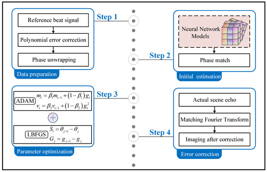 where represents the beat frequency of the target and denotes the Residual RVP [30]. In near-field imaging, the time delay is minimal, and thus, the RVP term is ignored in subsequent processing. In this paper, the phase error of the beat signal is further modeled as the sum of a polynomial phase set and a sinusoidal function set: