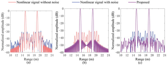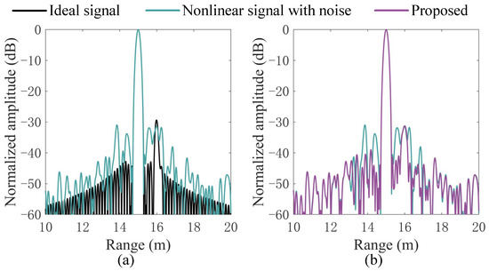Unfortunately, existing transmit–receive chains inevitably introduce some degree of nonlinearity into the signal. For instance, linear frequency modulation (LFM) signals generated using digital direct synthesis (DDS) and phase-locked loops inherently exhibit certain nonlinear characteristics. Furthermore, nonlinear components such as frequency multipliers, mixers, and filters in the signal transmission path exacerbate the degradation of chirp linearity. Consequently, in ultra-wideband application scenarios requiring high-quality range resolution, nonlinear correction techniques are indispensable. These techniques play a pivotal role in determining the imaging quality of range profiles and are critical for ensuring the performance of FMCW radar systems [7,8].