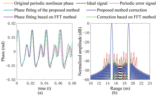 Based on the analysis in the previous section, periodic errors can generate paired echoes near the target, severely degrading the detection performance for nearby weak targets and far-range targets. To address this issue, periodic nonlinear correction is essential. Since nonlinearity is an intrinsic modulation characteristic of the system and independent of the target, this section first employs ideal single targets, such as delay lines or corner reflectors, to accurately estimate the system’s nonlinearity. The estimated parameters are then used to construct a matched Fourier transform, enabling space-variant nonlinear correction for multiple targets.