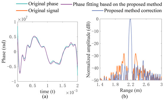 where represents the time delay of the reference target. After removing the polynomial phase error using methods such as those in [12,13,14], the beat signal becomes as follows: