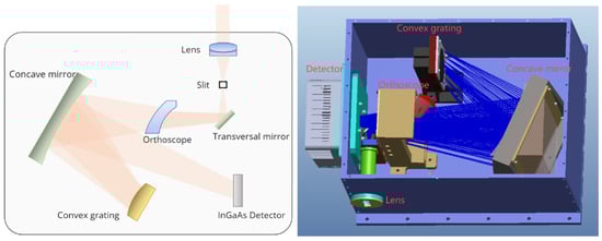 Imaging optical path (left) and composition structure (right) of the SWIR spectrometer.