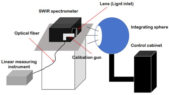 Spectrometer calibration has garnered attention from researchers. For example, Quintus et al. conducted pre-launch calibration on the TROPOspheric monitoring instrument (TROPOMI) load on the Sentinel-5 satellite to enhance data accuracy [6]. Similarly, Staebell et al. performed detailed spectral calibration on MethaneAIR, a simulated airborne product of the MethaneSAT satellite. This calibration included stray light correction, spectral response function (SRF) acquisition, and Savitzky–Golay smoothing, laying the foundation for MethaneSAT’s successful operation [7,8]. In China, Zhou Haijin, Zhao Minjie, and Yan Ge of the Anhui Institute of Optics and Fine Mechanics [9,10,11] conducted spectral and radiometric calibrations of the Environmental Trace Gases Monitoring Instrument (EMI-01, EMI-02, and EMI-NL), which is highly important for the remote sensing inversion of the spectrometer. However, the research on the comprehensive calibration of SWIR band spectrometers, such as spectral and radiation calibrations, is lacking. This study conducted systematic and detailed calibration of the self-designed SWIR spectrometer, including spectral and radiation calibrations. The calibration process determined actual performance parameters, such as the wavelength range and spectral resolution of the spectrometer. Additionally, the calibration uncertainties were analyzed. Subsequently, to verify the influence of calibration on the measurement of the designed SWIR spectrometer, the solar scattering spectrum was measured by the spectrometer, and a CH4 standard gas experiment was performed. The results demonstrate the validity and necessity of calibration before using the spectrometer and lay a foundation for subsequent study on atmospheric methane detection.