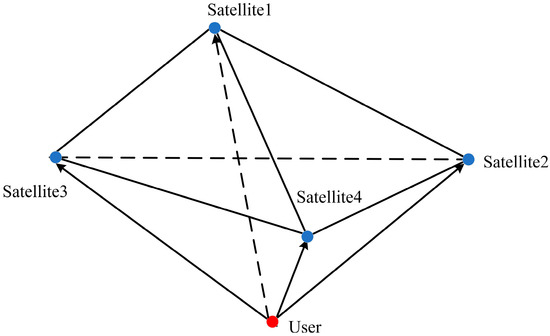 where , , represent the satellites selected from the different satellite groups and represents the basic satellite subset. An example of choosing the basic satellite subset is shown in Figure 4.