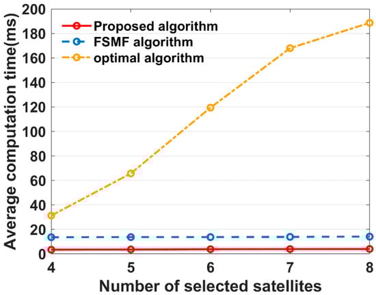 Average computation time of different algorithms with different satellite subset sizes.