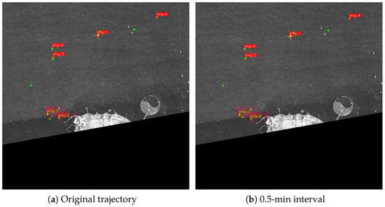 Firstly, time filtering was used to ensure that the selected AIS data matches the time range of image capture, avoiding mismatches due to a large time span. The time filtering equation is formally represented as shown in Equation (1):