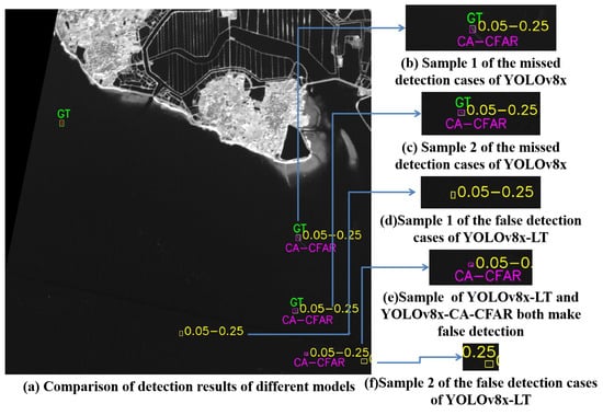 The YOLOv8 series models, with their powerful feature extraction capability, can effectively detect suspicious targets in complex backgrounds. Experimental results show that the secondary judgment strategy in the proposed YOLOv8x-CA-CFAR model effectively avoids the problem of increased false positives caused by simply reducing the confidence threshold. Compared to the YOLOv8x-LT model, which only improves Recall rate by adjusting the threshold, YOLOv8x-CA-CFAR, by utilizing the adaptive background noise suppression characteristic of CFAR, shows a significant advantage in reducing false positives, thereby further increasing the F1-score, validating the feasibility and forward-looking nature of the “traditional + intelligent” fusion method. This also illustrates the generality of knowledge across different domains.