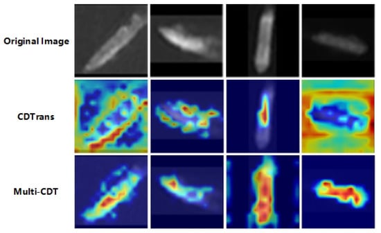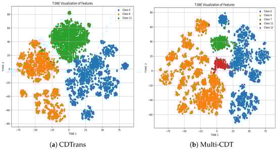 Early unsupervised domain adaptation methods primarily reduced the distribution difference between source and target domains through metrics like Maximum Mean Discrepancy (MMD) [41,42,43], but their effectiveness was limited by sample imbalance and insufficient feature alignment, with subsequent improvements proposed [44,45]. Adversarial domain adaptation methods [46,47,48,49,50] can more precisely match feature distributions but suffer from training instability. Methods like the MCD [51] and BSP [52] offer different perspectives, being particularly suitable for feature boundary adjustment in specific tasks. CDTrans [53] enhances domain alignment effects using the cross-attention mechanism of Transformers, improving model robustness.