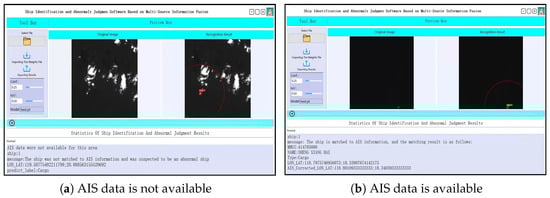 When there is no AIS information around the vessel, it is deemed an abnormal vessel. In this case, the detection results are sliced and then input into a classifier trained on AIS–SAR data, corresponding to the model Multi-CDT in Section 3.3, ultimately outputting the coordinates of the abnormal vessel and its predicted category. When there are no vessels around the AIS information, the AIS information is considered abnormal data and is retained. Finally, all the results are saved for expert analysis and judgment.