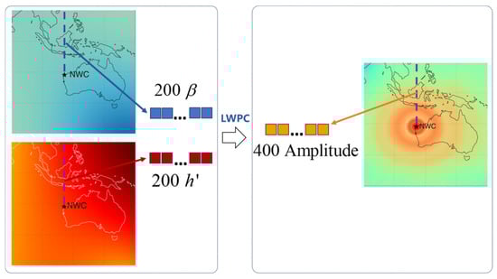 Each path, denotated as path n, is characterized with 200 pairs of h′ and β parameters:, corresponding to and . The corresponding amplitude vector can be derived from each path, given that the output resolution is 20 km. The region, notated as region m, encompasses the 360 azimuthal directions and can be described by a two-dimensional matrix of waveguide parameters, while the associated output amplitude matrix is denoted as .