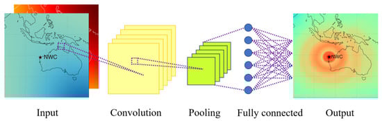 The CNN typically consists of convolutional layers, pooling layers, and a fully connected layer [33]. The primary goal of the convolutional layer is to extract features from the input image using kernels or filters, allowing the network to learn spatial hierarchies of patterns. Pooling layers can resolve the overfitting issue by down-sampling the data, effectively compressing the feature maps while retaining important information [34]. Finally, the fully connected layer connects the nodes from the previous layers to the output dataset, enabling the network to provide prediction results based on the features learned throughout the architecture [35]. This structure facilitates effective image processing and prediction tasks in various applications. The brief structure of CNN is shown in Figure 3.