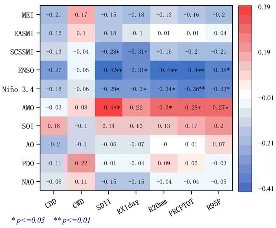 3.2.1. Correlation of EPIs with PRCPTOT