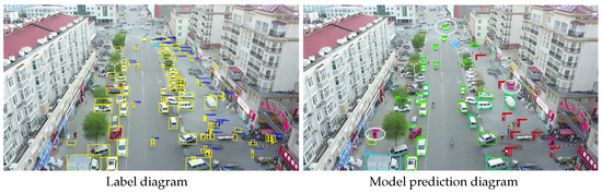 33] dataset contains some indistinguishable object categories, such as “pedestrian” and “people”, the similarity between these two categories is very high, which makes it challenging for the object detection model to distinguish between them. This paper argues that the objective of an object detection algorithm is to detect the category and location of objects in an image, rather than to identify human behavior. Therefore, the “pedestrian” and “people” categories can be combined into a single class to better evaluate the model’s performance. Additionally, because of the limitations of manual labeling, not all small objects in the images are labeled. As a result, when the model detects objects without corresponding labels, the calculation method based on the MS-COCO dataset will treat the detection result as an error detection sample, since there is no corresponding label data to compute it. Thus, there are some limitations in simply using the data in the table to evaluate the model. The detection map of the experimental results from