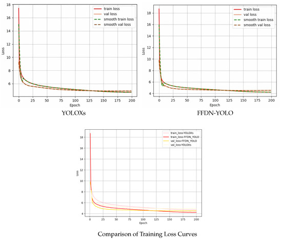 Figure 10. The results show that the FFDN-YOLO model is superior to YOLOXs in terms of convergence speed and convergence value, which indicates that FFDN-YOLO can capture the contextual information of small objects more effectively, thereby learning the global and fine-grained information of small objects more quickly.