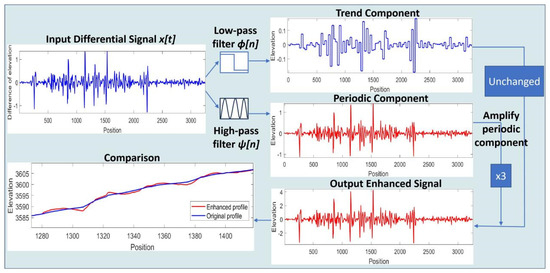 The trend components remain unchanged, while the periodic components are amplified by a factor of three during the enhancement process (Figure 6).