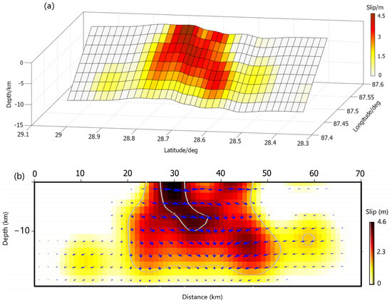 4.2. Inversion of Fault Slip Distribution