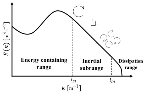 Kolmogorov’s hypothesis [23] offers a valuable perspective for understanding turbulence, which is difficult to represent physically due to its unpredictable nature. According to the concept of an energy cascade [24], energy supplied from the atmosphere leads to the formation of large-scale eddies, which gradually break down into smaller ones. This process continues as energy transfers from larger eddies to smaller ones until all turbulent kinetic energy is dissipated as heat due to viscous forces. Kolmogorov’s local isotropy hypothesis suggests that small-scale eddies are statistically isotropic when flows have sufficiently high Reynolds numbers. This implies that the influence of the mean-field on large eddies and the directional differences (anisotropy) caused by the mean-field diminish as we consider smaller eddies, ultimately becoming negligible. Furthermore, Kolmogorov’s second hypothesis of similarity posits that for flows with high Reynolds numbers, the statistical properties of the eddy motion in the inertial subrange take on a universal form determined by the EDR.