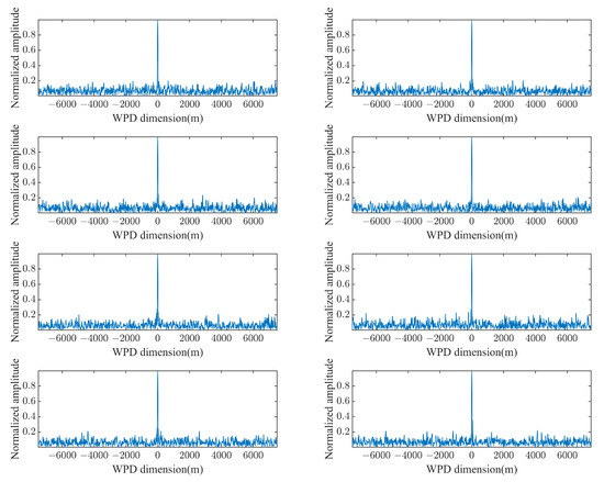Figure 4 shows the spectrum of the conjugate cross-correlation signal for eight consecutive pulses, while Figure 5 presents the WPD-ROC AF obtained through the accumulation of these eight pulses. A comparison reveals that the two-dimensional spectrum resulting from multi-pulse accumulation exhibits a significantly higher SNR, thereby enabling more accurate identification of the frequency and phase values.