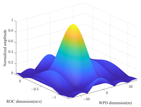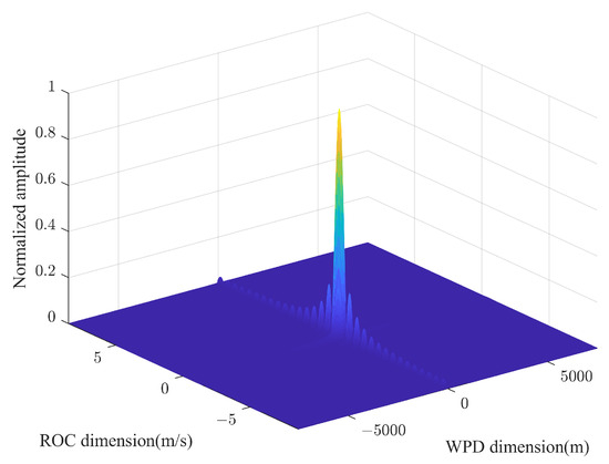 Equations (20) and (21) indicate that the peak in the WPD-ROC AF must be located. The frequency corresponding to this peak, along with the phase of the two-dimensional spectral peak, can be used to estimate the initial wave path difference at the starting moment . Furthermore, the Doppler frequency associated with the peak provides the estimation of the rate of change of the wave path difference .