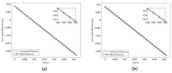 As the target moves, both the angle of deviation from the normal direction of the array and the wave path difference between the receiving array will change. As shown in Equation (1), the variation in the wave path difference can be used to derive the change in angle. Assuming a stop-and-go model, the wave path difference at each pulse time is expressed as follows:
