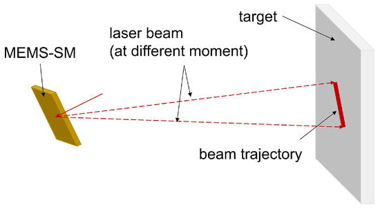 Firstly, the model of the complex photocurrent signal in a rapid scanning situation is studied. As shown in Figure 7, around the sample time window , the laser beam is scanned by a MEMS scanning mirror (MEMS-SM) to form a beam trajectory. The complex photocurrent signal is equivalent to the superposition of the echo signal at each point on the trajectory. So, the model must be modified from Equation (17).