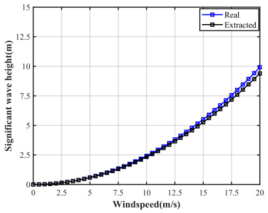 Figure 3 illustrates the variation between extracted and actual significant wave heights as a function of wind speed under fully developed wind seas. Despite some discrepancies, the results exhibit general consistency. To quantify these differences, the relative error is defined as