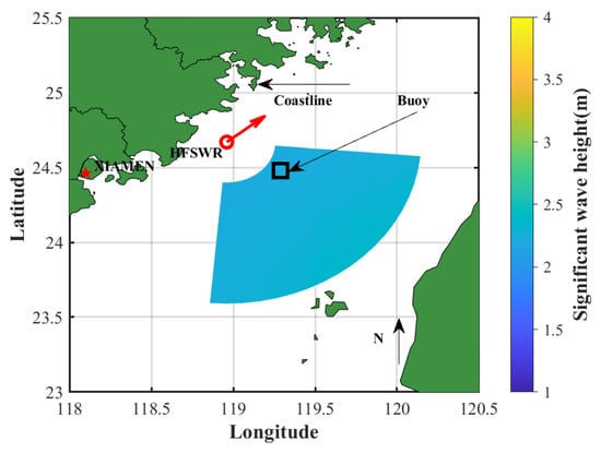 Compared with traditional instruments such as current meters, buoys, and aerostats, high-frequency surface wave radar (HFSWR) has emerged as a promising technology for marine environment monitoring, offering advantages such as low cost, large-scale coverage, and real-time performance [1,2,3] by using vertically polarized electromagnetic waves with 3–30 MHz.