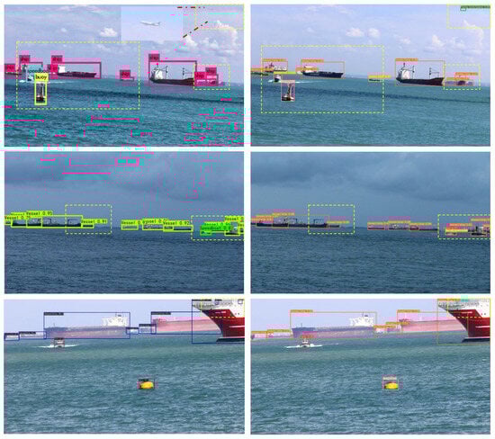 The Singapore Maritime Dataset (SMD) [36] includes coastal surveillance data from a variety of environments. This dataset contains occlusions and category imbalances that are common in marine environments. Furthermore, the presence of inaccurate labels and loosely defined bounding boxes within the ground truth data presents multifaceted challenges for maritime target detection models.