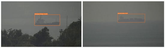 Although the application of these models and algorithms has promoted the development of target detection technology in video surveillance systems, there are still many challenges for maritime target detection and recognition. Firstly, the diversity of scales and types of maritime targets is an important challenge. In maritime video surveillance images, various types and sizes of ships appear from close and far away, such as small sailboats, large oil tankers, container ships, etc. Due to the significant changes in the scale of the objects in the image data, small targets are readily lost, and the detection performance for large and tiny targets varies noticeably. Secondly, the complexity of the marine environment is also a challenge. The marine environment is relatively more complex than that of land, being prone to adverse weather conditions such as rain and fog, and having low-visibility scenes such as early day, night, cloudy days, and so on. It is necessary to establish models that describe different conditions to achieve full coverage of various weather and lighting conditions. On the other hand, the dynamic characteristics of the water surface pose challenges for background modeling and subtraction, such as surges, ship wakes, surface waves, and so on. Furthermore, the limited computing power of monitoring terminals is another issue. Marine surveillance cameras are usually installed near shore, on islands or floats, and need to be deployed on low power (less than 50 W)–low calculation power (less than 50 TOPS) edge computing terminals such as the NVIDIA Jetson series. This also limits the amount of computation required for the algorithm.