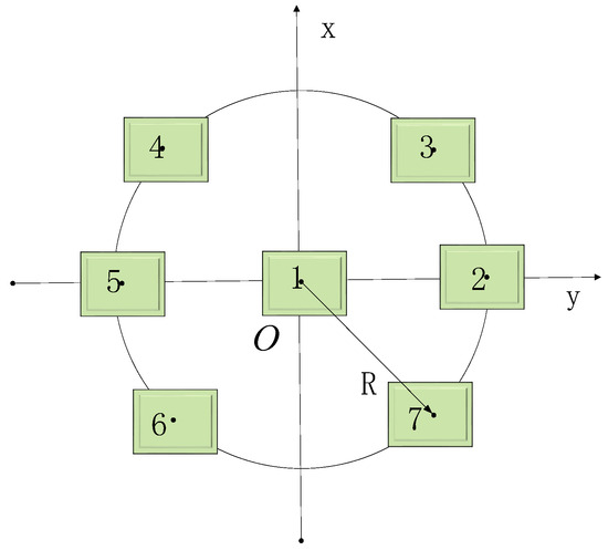 We take seven elements as an example to illustrate the bias compensation algorithm with an odd number of elements. The distribution of elements is as shown in Figure 5.