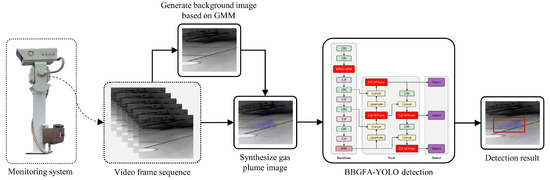 - We employ background estimation and image synthesis methods for the first time to incorporate background information into gas plume images, seeking to address the challenge of the feature texture information of leaking gas plume targets being easily disrupted by complex backgrounds. This approach significantly enhances the learning capacity of existing neural networks regarding the motion characteristics of gas plume targets and reduces the difficulty in manual dataset labeling.