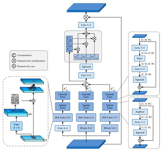 - Azad, R.; Niggemeier, L.; Hüttemann, M.; Kazerouni, A.; Aghdam, E.K.; Velichko, Y.; Bagci, U.; Merhof, D. Beyond Self-Attention: Deformable Large Kernel Attention for Medical Image Segmentation. In Proceedings of the IEEE/CVF Winter Conference on Applications of Computer Vision, Waikoloa, HI, USA, 3–8 January 2024; pp. 1287–1297. [Google Scholar]