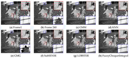 - St-Charles, P.-L.; Bilodeau, G.-A. Improving Background Subtraction Using Local Binary Similarity Patterns. In Proceedings of the IEEE Winter Conference on Applications of Computer Vision, Steamboat Springs, CO, USA, 24–26 March 2014; IEEE: Piscataway, NJ, USA; pp. 509–515. [Google Scholar]
