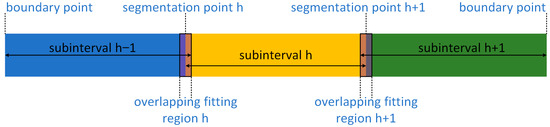 In this paper, the trend function of each subinterval is fitted independently, and no constraint is established between the trend functions of adjacent subintervals. Consequently, the transition at the junction of subintervals is discontinuous, and there exists a small numerical deviation. To address this issue, the paper proposes a scheme for smoothly transitioning the trend functions between adjacent subintervals. This scheme introduces an overlapping fitting region near the junction of two adjacent subintervals, as shown in Figure 4, and the steps to implement this scheme are as follows: