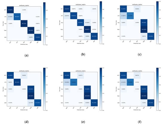 Figure 8 shows the confusion matrices of the five methods for the last scenario in the complex dataset