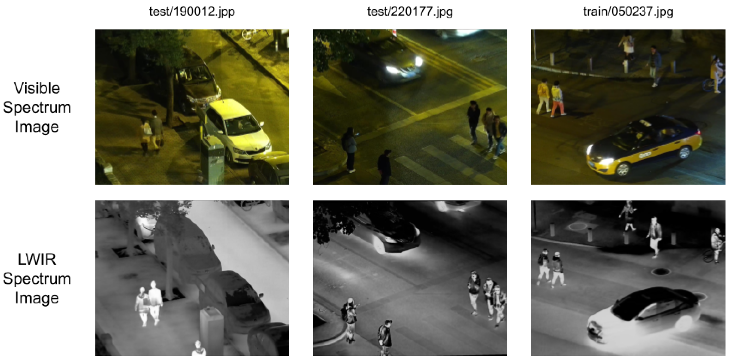 Examples of visible–LWIR image pairs from LLVIP dataset.