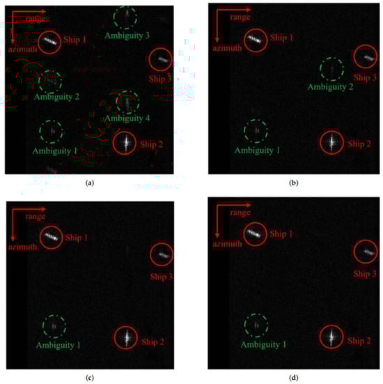 - Xu, G.; Xia, X.G.; Hong, W. Nonambiguous SAR image formation of maritime targets using weighted sparse approach. IEEE Trans. Geosci. Remote Sens. 2017, 56, 1454–1465. [Google Scholar]