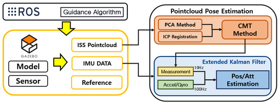 With the increasing interest in performing various missions in space, research on precise mission performance using sensors such as camera and LiDAR has been actively conducted. Unlike the ground environment, the space environment often utilizes prior data about the target of the mission, and it is important to estimate the position and attitude accurately by combining them with the data of the chaser. Therefore, research using various sensors in the space environment [1,2,3,4] is actively being conducted, and recently, research using point cloud data obtained by TOF cameras or LiDAR sensors [5,6] has been developed. Mission performance in the space environment can be categorized into cooperative and non-collaborative mission performance [7], depending on whether the information of the target is utilized in advance.