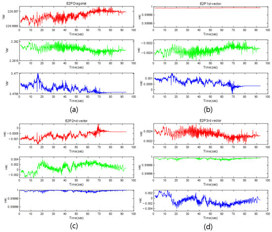 In order to maintain the distribution of point clouds and reduce the changes in variance and eigenvectors derived from the covariance matrix, the results of E2PCA using PCA by matching point cloud at docking time through the ICP method are as follows.
