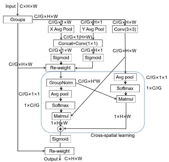 The coordinate attention module does perform well in integrating accurate spatial position information and capturing long-distance spatial interactions, thus improving the performance of the model, but it does not fully take into account the full range of interactions in spatial position, and the limited receptor field of the 1 × 1 convolution kernel limits the model’s ability to model local channel interactions and context information. In short, while the coordinate attention module improves the model’s performance, it also has the problems of insufficient consideration of the comprehensiveness of spatial interaction and limited ability to perform local interaction capture.