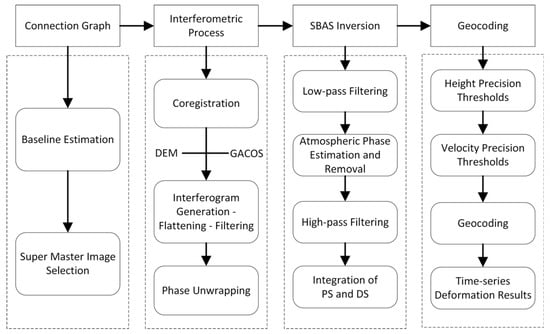 - Lanari, R.; Mora, O.; Manunta, M.; Mallorquí, J.J.; Berardino, P.; Sansosti, E. A small-baseline approach for investigating deformations on full-resolution differential SAR interferograms. IEEE Trans. Geosci. Remote Sens. 2004, 42, 1377–1386. [Google Scholar] [CrossRef]
