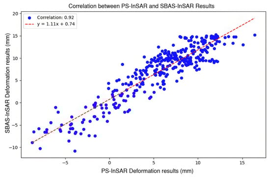 Correlation of PS-InSAR and SBAS-InSAR results.