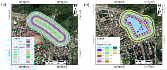 Quantitative processing of qualitative factors. (a) Subway buffer zone. (b) Housing construction buffer zone.