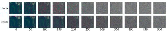 Finally, a 1 × 1 convolution is employed to adjust the channel dimension of the feature map, followed by a GELU activation function to enhance the nonlinear representation of the features. After this series of carefully designed feature extraction, fusion, and redundancy removal operations, the resulting feature map provides a highly optimized multimodal feature representation. This representation fully integrates the all-weather observation information from the SAR images and the spatial–spectral information from the cloudy images, serving as a rich conditioning signal to guide the subsequent image denoising diffusion process.