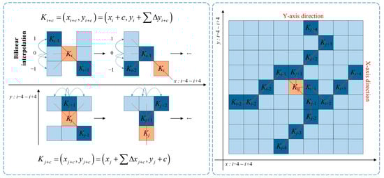 where among which, for a horizontal convolutional kernel, represents the horizontal distance from each grid in the kernel to the central grid. Similarly, in the vertical direction, the position relative to the central grid in the convolutional kernel requires applying a horizontal offset based on the previous network position to fit the morphology of the target. The convolutional kernel along the vertical direction is denoted as: