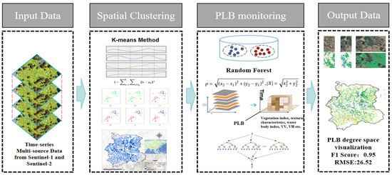 Time Series Random Forest Regression with radar time series data (STS–RF): A specialized RF model that uses time series data from a single source from radar to analyze and predict PLB trends based on time patterns. It is similar to the TS–RF model in construction, but only the VV and VH bands synthesized every month are used for training to explore the disease monitoring capability of the radar.